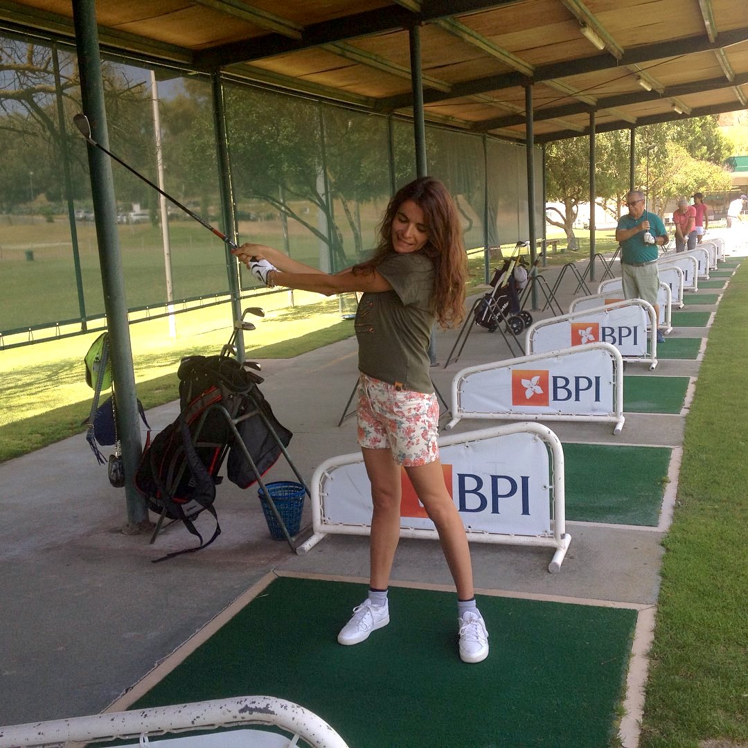 Não fiquei nenhuma golfista, isso não, mas gostei de estar no exterior, no verde, de dar algumas tacadas, de acertar nos buracos, e de começar do zero num desporto que certamente ficarei por ali durante anos. Ali, próximo do zero (risos).