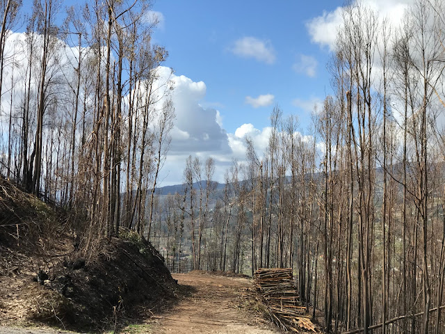 Também vi e fotografei o mais cinza, o mais negro da paisagem. O monte e acesso ao miradouro (ou miradouros, risos) estavam ainda marcados por um recente e significativo incêndio. Mas, e a contrastar, havia também já marcas de cor, de trabalho para mudar, para recuperar e dar nova Vida e Luz à envolvente. É forte e especial este ‘nosso Portugal’!