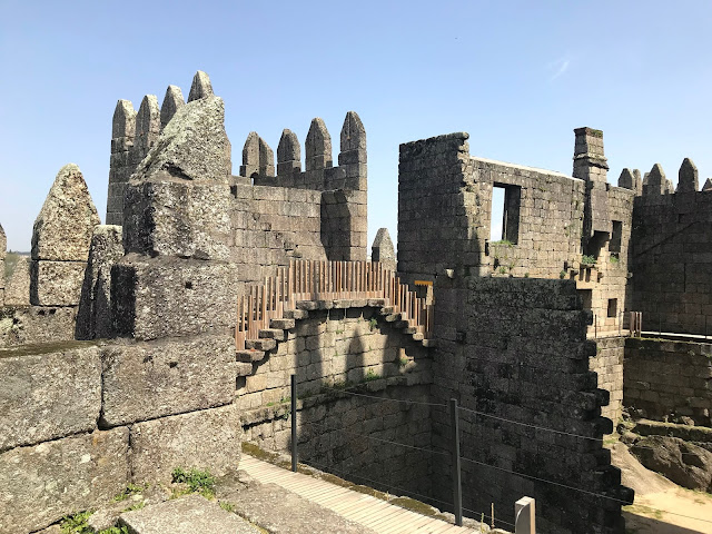 Estava um lindo dia de sol, cheguei e ainda antes de entrar nas muralhas, e uma vez mais, fruto dos anos e anos sem passar por ali, alguns pensamentos surgiram imediatamente: ‘isto é mais pequeno do que imaginava’, ‘recordo-me vir aqui, mas o castelo era diferente, era enorme’. O castelo mantém-se exatamente com as mesmas torres, com as mesmas muralhas e com a mesma dimensão. Mas eu, eu estou diferente, como está a minha visão e a minha perspetiva sobre as coisas, sobre a Vida. Idade! Entrei no castelo, circulei pelas muralhas e subi algumas das torres para desfrutar da vista para a cidade e para o verde que circunda o castelo, mas não subi à mais alta, à principal, a torre de menagem. Interdita (para vista)! Mas no seu interior estavam disponíveis muitos conteúdos. Era a história de Portugal. Subi e desci escadas, fotografei muralhas e fotografei turistas. Sim, fomos, estávamos muitos turistas e curiosos à ‘conquista’ do castelo, do conhecimento e da cultura de uma das 7 Maravilhas de Portugal. Uma conquista saudável e amigável. E assim vale a pena ‘lutar’ …